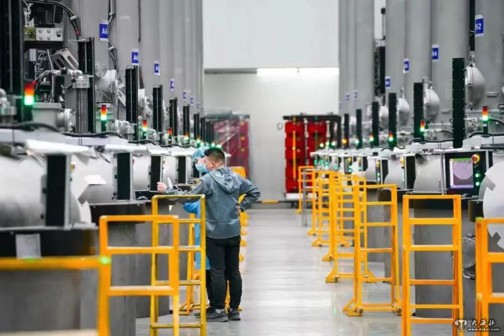 青海高景太阳能科技有限公司生产车间里工作人员正在观察设备运行情况。新华社发