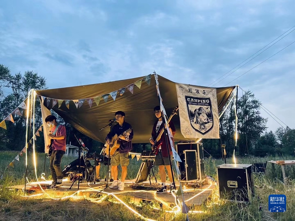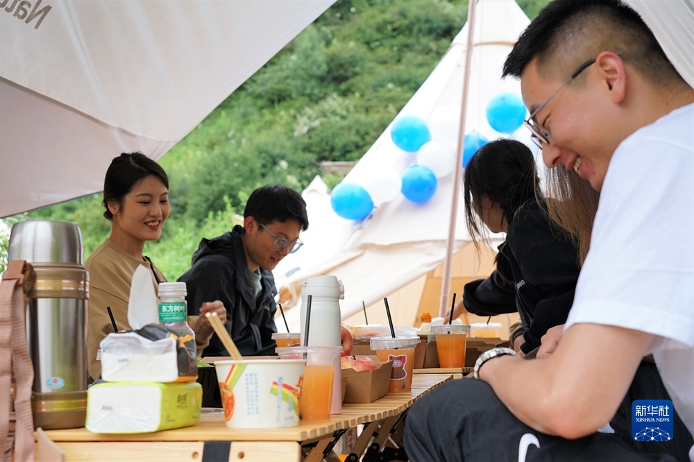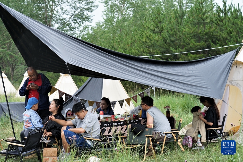 7月17日,游客在“夏天的风”露营营地。新华社记者 解统强 摄