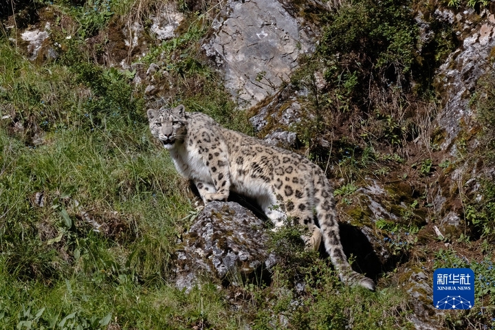 这是在青海玉树藏族自治州杂多县昂赛大峡谷内拍摄的雪豹(2022年8月6日摄)。新华社发(姚牧阳摄)