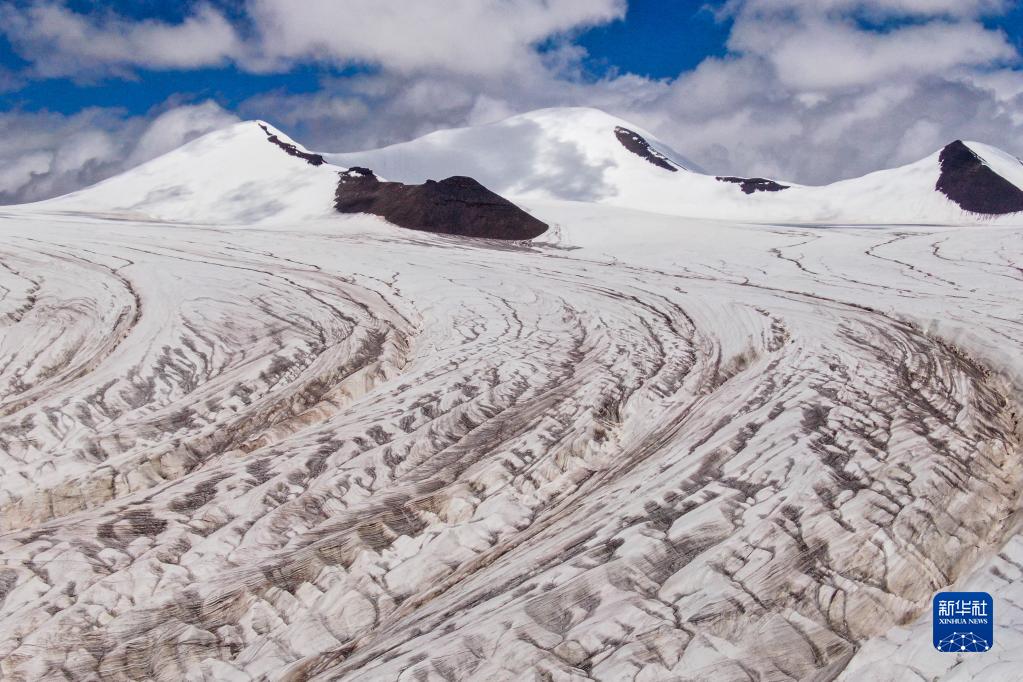 这是2021年7月26日拍摄的长江源地区的冬克玛底冰川(无人机照片)。新华社记者张龙摄