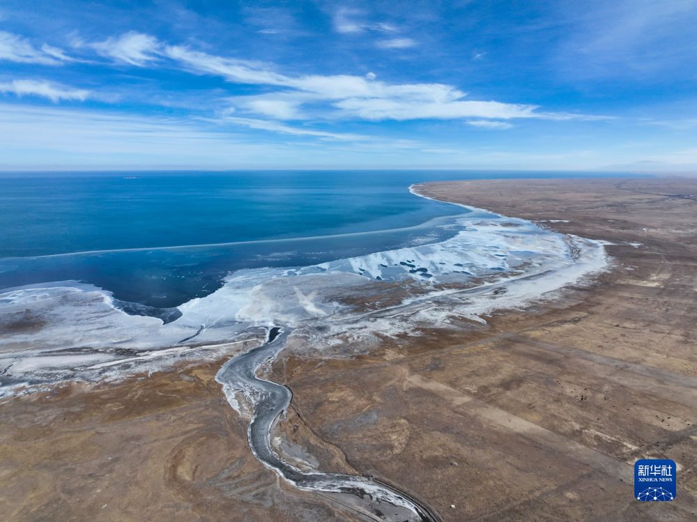 这是2022年12月9日拍摄的青海湖一角(无人机照片)。(新华社记者张龙摄)