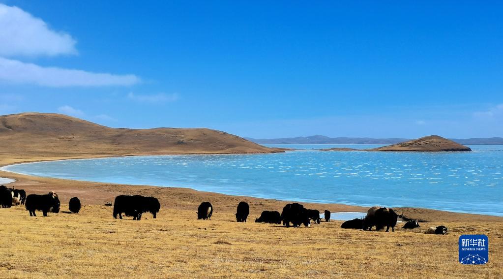 在三江源国家公园黄河源园区拍摄的扎陵湖风光(2022年3月12日摄)。新华社记者吕雪莉摄