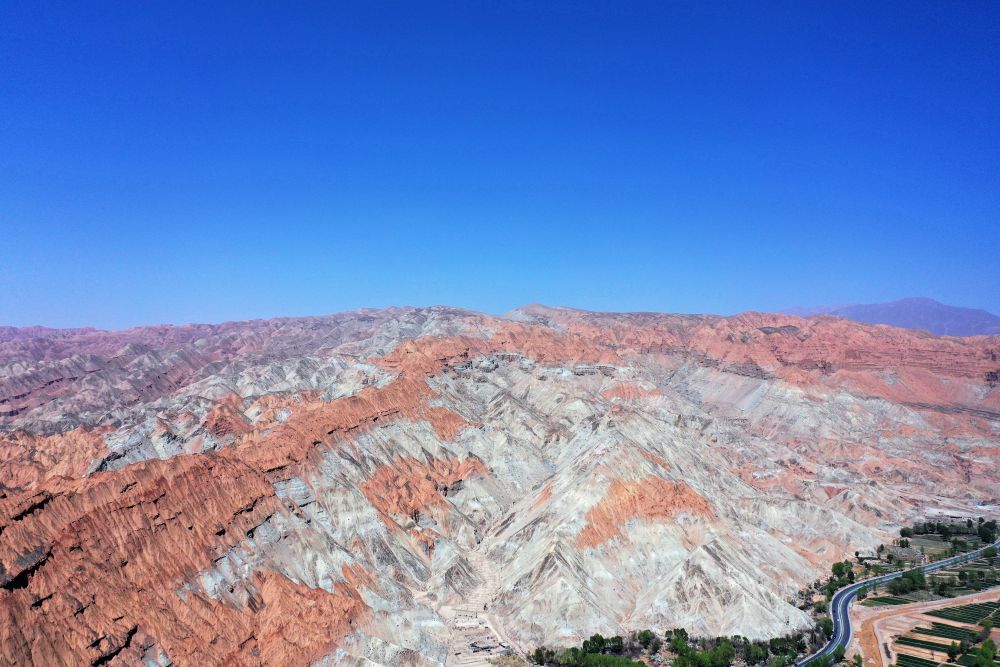在青海省海南藏族自治州贵德县,丹霞地貌在春日暖阳下,色彩斑斓,壮美如画。