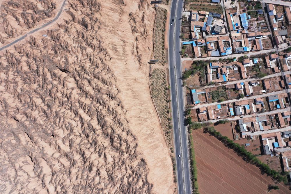 这是4月17日拍摄的青海省海南藏族自治州贵德县境内的丹霞地貌(无人机照片)。新华社记者耿辉凰摄