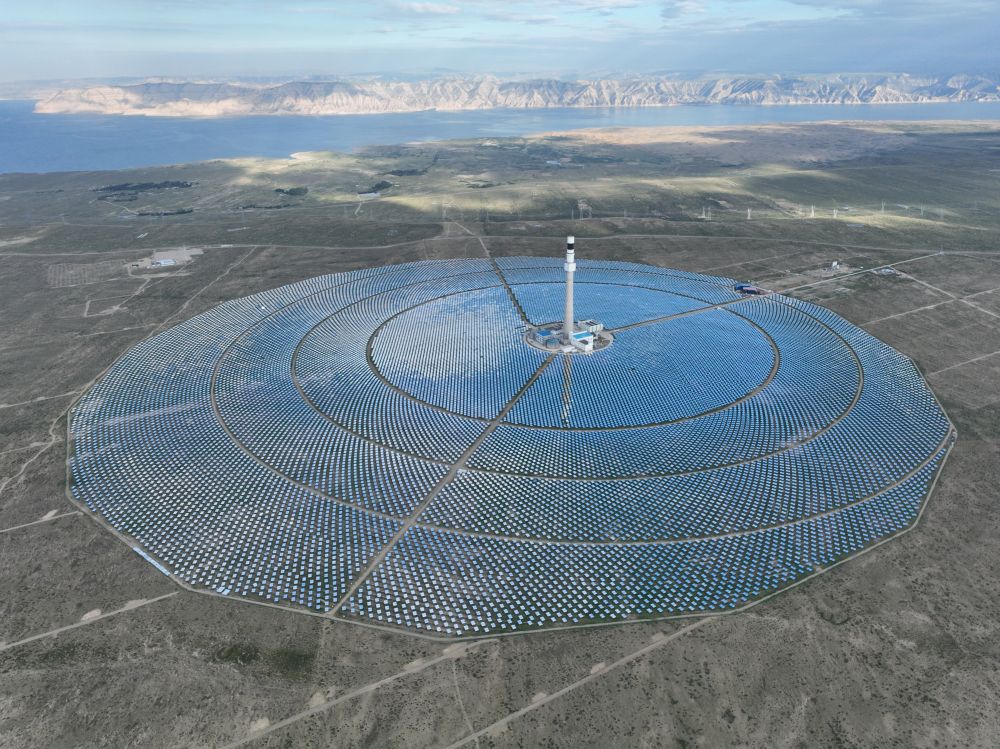 ↑2023年8月15日在青海省海南藏族自治州共和县拍摄的塔式光热发电项目。新华社记者邢广利摄