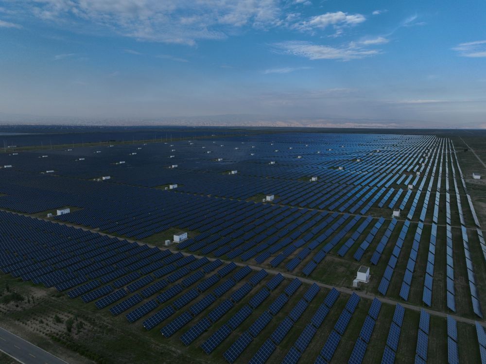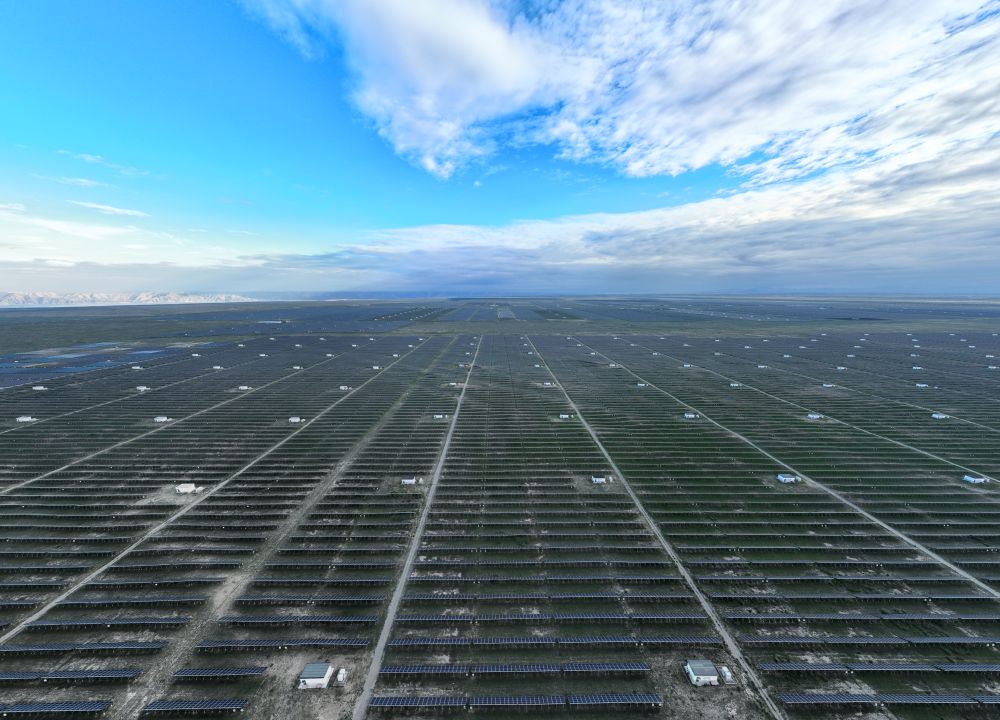 ↑2023年8月15日在青海省海南藏族自治州共和县拍摄的光伏电站。新华社记者邢广利摄