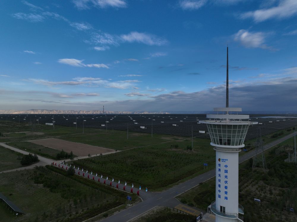 一条条高压输电线连接着塔拉滩的“光”与龙羊峡的“水”,实现塔拉滩上经济效益和生态效益的共赢。