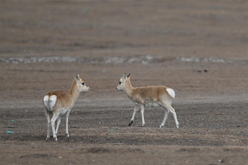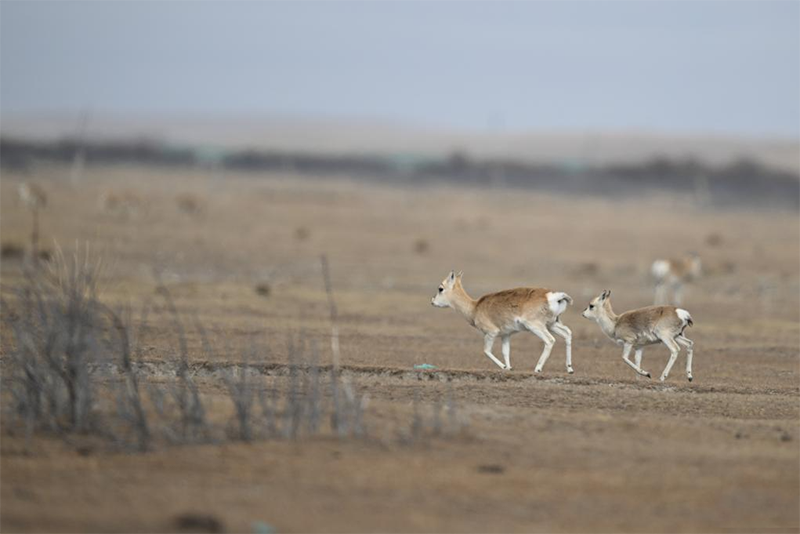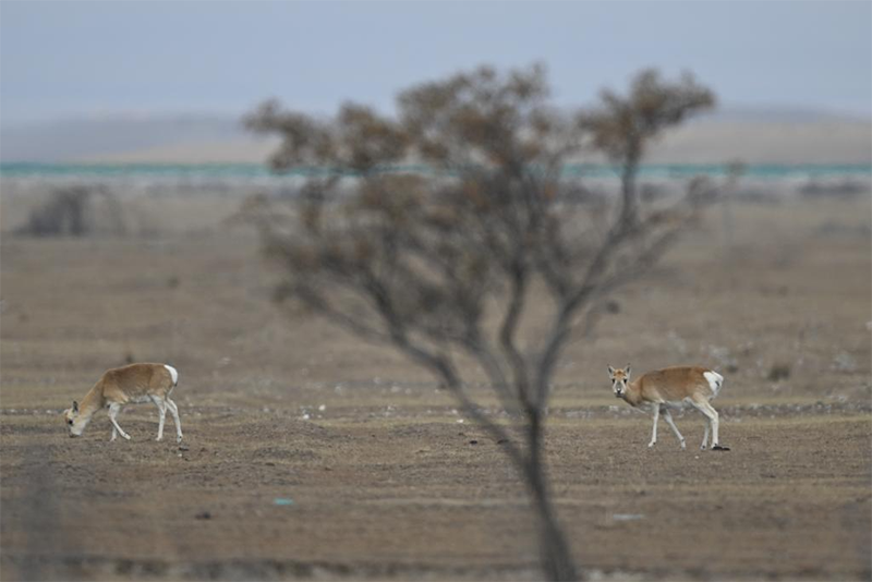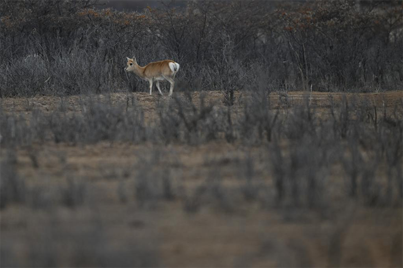11月16日,一群普氏原羚在青海省海北藏族自治州刚察县哈尔盖镇境内的草原上活动。
