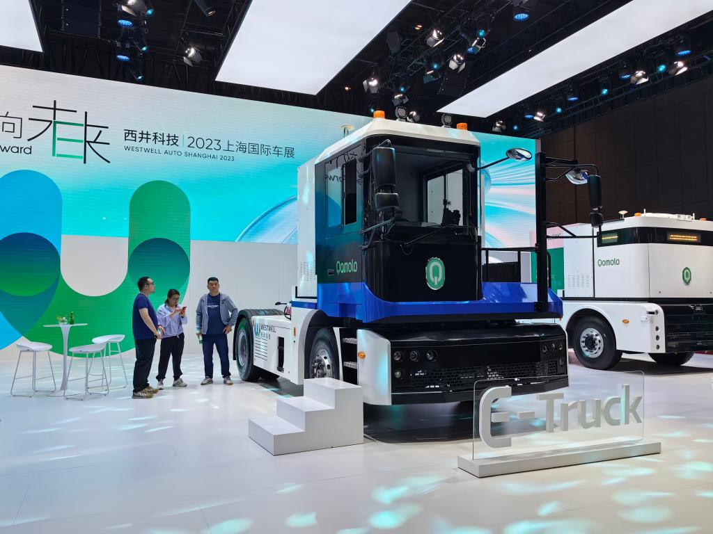4月18日,西井科技在车展上展示“可升级自动驾驶”的智能网联新能源重卡QomoloE-Truck。新华社记者周蕊摄