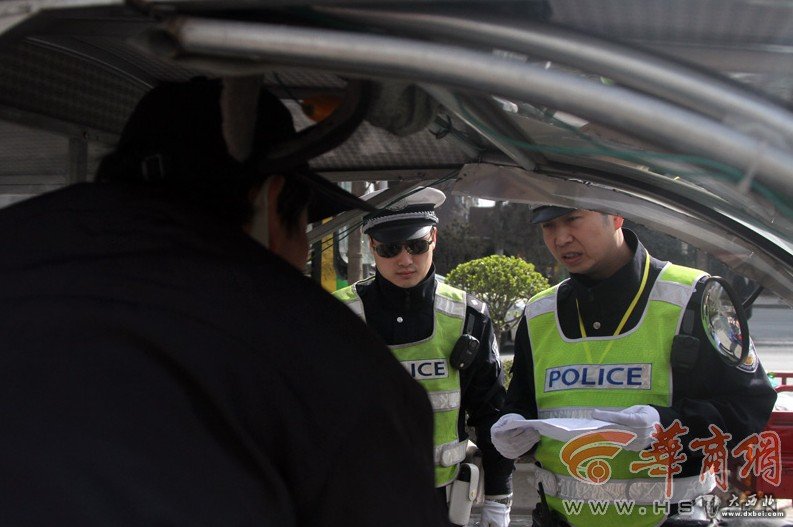 说话间,执勤民警将一辆准备加速驶离的三轮车拦停,车主开始并不愿意配合,随后在民警劝说下从车上下来,向民警哭诉家里条件差。