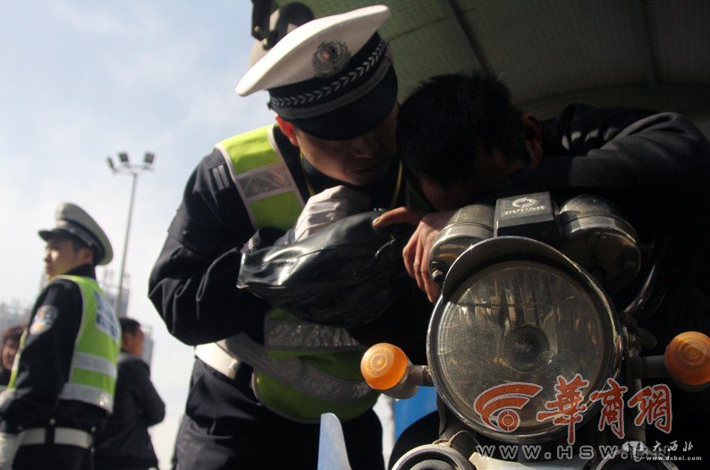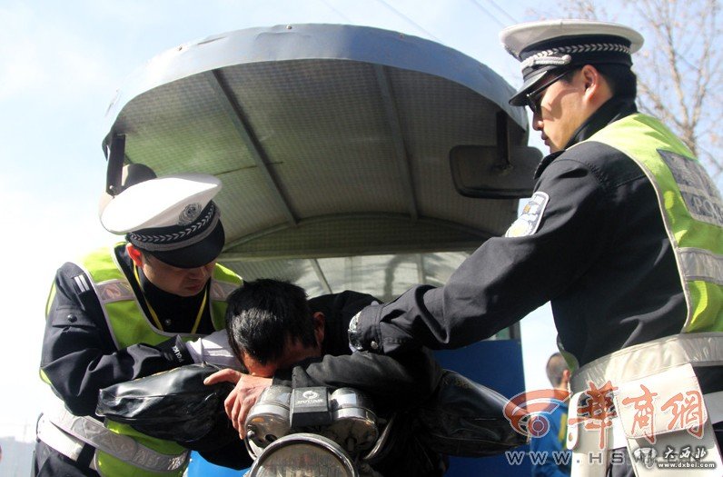 大西北网3月15日讯 据西部网报道 看到交警在路口设卡盘查,三轮车主加速准备驶离,被交警拦停后,车主使劲抓住车头趴在上面,随后又哭起来。昨日,西安交警在多个路段对扎堆非法营运的摩的、三轮车进行查处,遇到交警掉头就跑的情况让交警多少有些无奈。