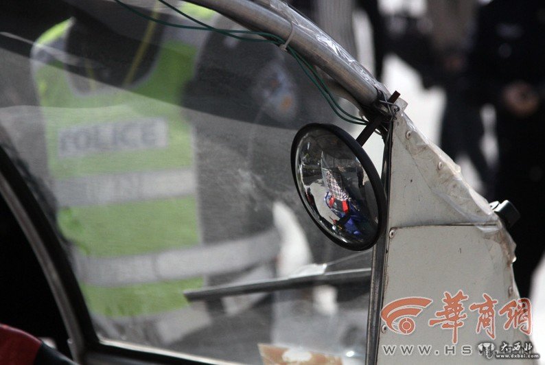 交警在丈八北路与鱼化寨街丁字路口查处非法营运三轮摩托车
