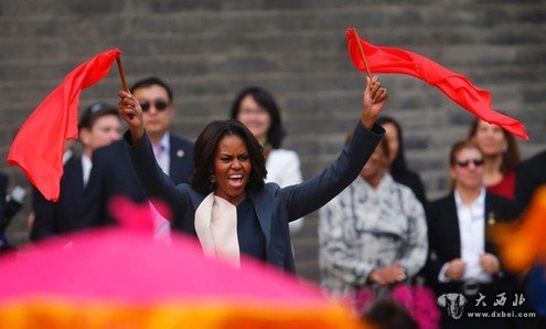 2014年3月24日,美国第一夫人米歇尔和她的母亲及两个女儿前往陕西西安南门城墙游览,现场米歇尔与中国艺术家一同扭起秧歌。