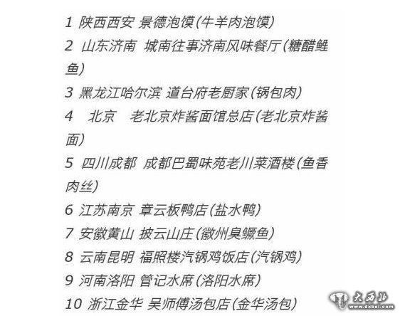 网传“中国100家最好吃的餐厅”榜单前十位