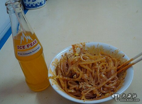 凉皮和肉夹馍是“黄金搭档”。冰峰作为西安的一种知名本地品牌碳酸饮料,几乎可以说是无人不知晓,无人不晓。而冰峰的一句广告语:从小就喝它,更是贴切的体现了冰峰无人能撼的霸主地位。走在西安街头,无论是中午,还是晚上,无论是大街小巷,饭店宾馆,随处可见的是一碗凉皮,一瓶冰峰,吃着烤肉,喝着冰峰的景象。