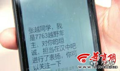 “19日快中午时,车主给我打来电话。”张越说,本以为车主会很凶,但车主却不住地夸他有担当、有责任感,还说雨挡也不贵,不用他赔了。张越的手机里,还有一条车主发来的短信。短信说:对你的坦诚、担当在汉中吧进行了表扬,你可以关注一下。
