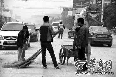 “共拦停了十五六辆车,并未对违规人员进行罚款,而是现场对他们进行了教育批评,然后找来扫帚、推车、铁锹等工具,要求司机将抛撒在路面上的石子清理干净,否则不予放行。”城管执法大队副大队长赵杰说,让司机清扫马路,目的只是教育,让他们体验一下保洁员工作的辛苦,在以后的行车途中做好车辆遮盖防护措施,减少抛撒现象。