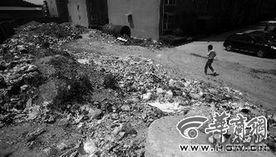 大西北网5月21日讯 据华商网报道 小区里堆放着建筑垃圾,而堆放处的地势比较低,还堵塞了下水。每逢下雨,小区内道路积水严重甚至导致路基下陷。