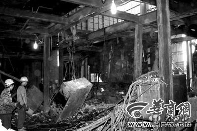 昨日上午,事发车间内一片狼藉 华商报记者 周金柱 摄