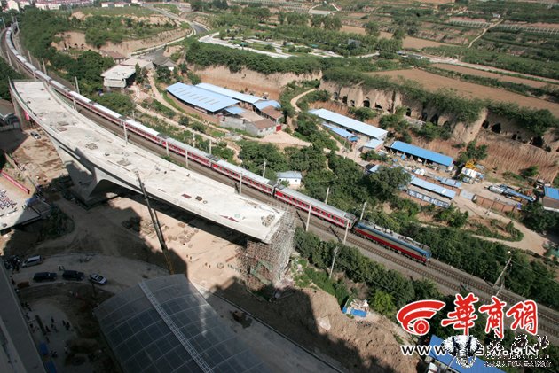 中铁七局集团西铁工程公司工作人员介绍说,桥梁主体从去年7月开始施工,由于桥梁上跨Ⅰ级电气化有陇海铁路,客货运列车通行频繁,施工安全要求极高。为了避免对既有线通行干扰和加快施工进度,该桥采用转体施工。