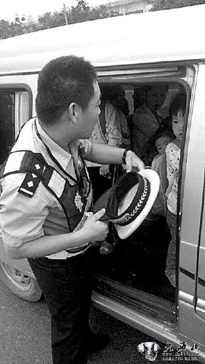 “幸亏民警没有生命危险,要不我真不知道咋给他家人交代!”昨日,公安临潼分局交警大队斜口中队中队长郭分粮说,9月22日下午4时30分,他带领民警在108国道斜口段,对过往车辆进行疏导,一辆车牌号为陕A3EK××的银灰色微型面包车,行驶至距离执勤民警十多米的地方,准备强行掉头,民警立即示意该车靠边停车,并上前查看。民警透过车窗玻璃,发现这辆核定载客7人的面包车内,塞了十多个幼儿,严重超载。