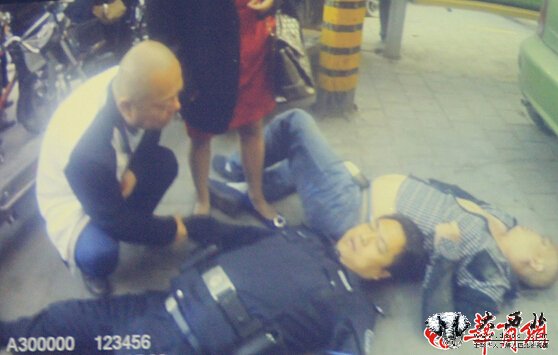 10月19日16时15分,西安市公安局莲湖分局环城西路派出所接到报案,在莲湖区大庆路南方酒店门口有人打架。接警后,出警民警侯英良、张宏民迅速赶往现场,发现南方酒店附近围坐着四五名群众,其中一名光头男子坐在地上,面部有伤,该光头男子即46岁的西安男子张某。