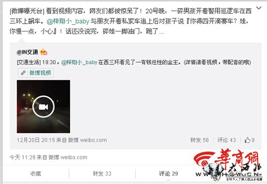 大西北网12月22日讯 12月20日晚,微博网友@梓翔小_baby 发布微博视频,视频中显示一名少年在路上开着一辆标有警徽的电动巡逻车,而当网友前去询问时该名少年突然加速。 》》》