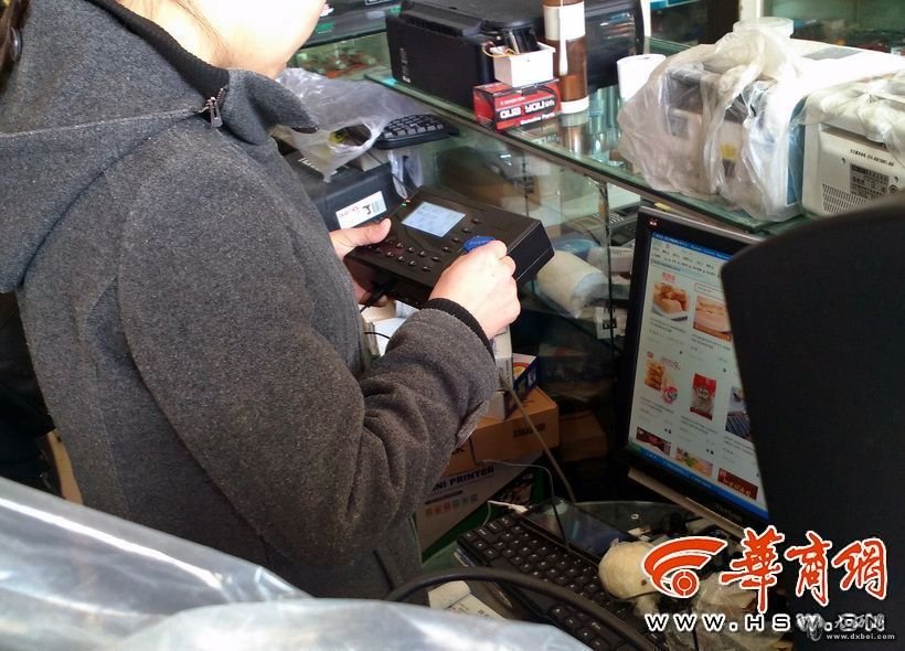 在女子去换钱的间隙,华商报记者注意到,电子柜台的女士手持的仪器上面有“Handheld RFID Writer”的字样,这排字母的下面,还有“电源”、“读卡”、“写卡”等三个指示灯。而仪器的中间部分,还有“读”和“写”两个按钮。