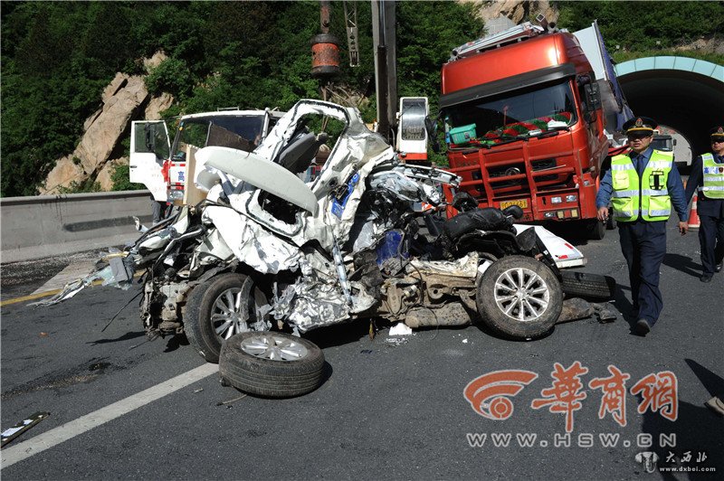 充电器、手电筒、拖鞋、被子、水壶、方便面等物品散落在路面上……道路中央,破碎的车窗、扭曲变形的轮胎、被挤成一块铁疙瘩的小轿车令人触目惊心……事故现场位于沪陕高速黄土梁隧道和半边河隧道之间,路政人员、交警正忙碌地进行现场处理和道路清理。据悉,事件造成一死多伤,伤者已经被送往医院接受救治。