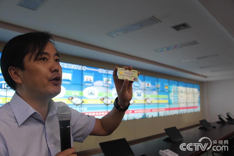 张鹏向记者展示智慧咸阳建设措施之一,整合有关财政惠民资金支付系统的“一卡通”