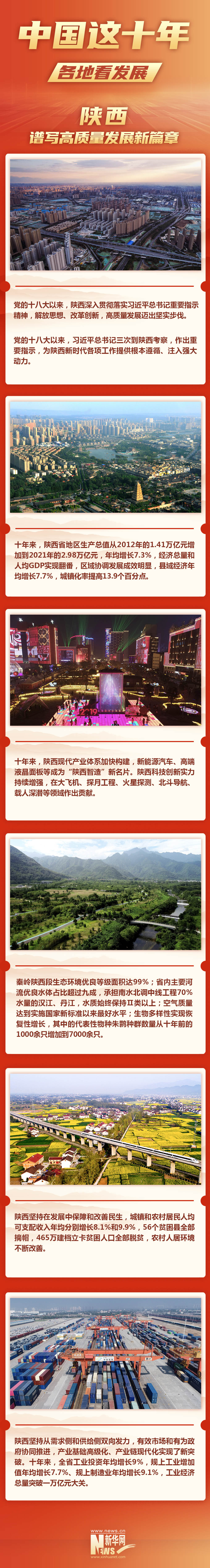 新华社西安8月31日电(记者郑昕、付瑞霞)记者从31日召开的“中国这十年·陕西”主题新闻发布会上获悉,党的十八大以来,陕西深入贯彻落实习近平总书记重要指示精神,解放思想、改革创新,高质量发展迈出坚实步伐。