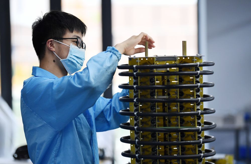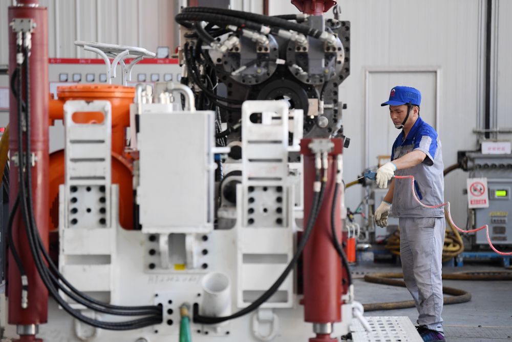 位于陕西西咸新区的陕西太合智能钻探有限公司,工人准备对智能定向钻机进行性能调试。新华社记者李一博摄