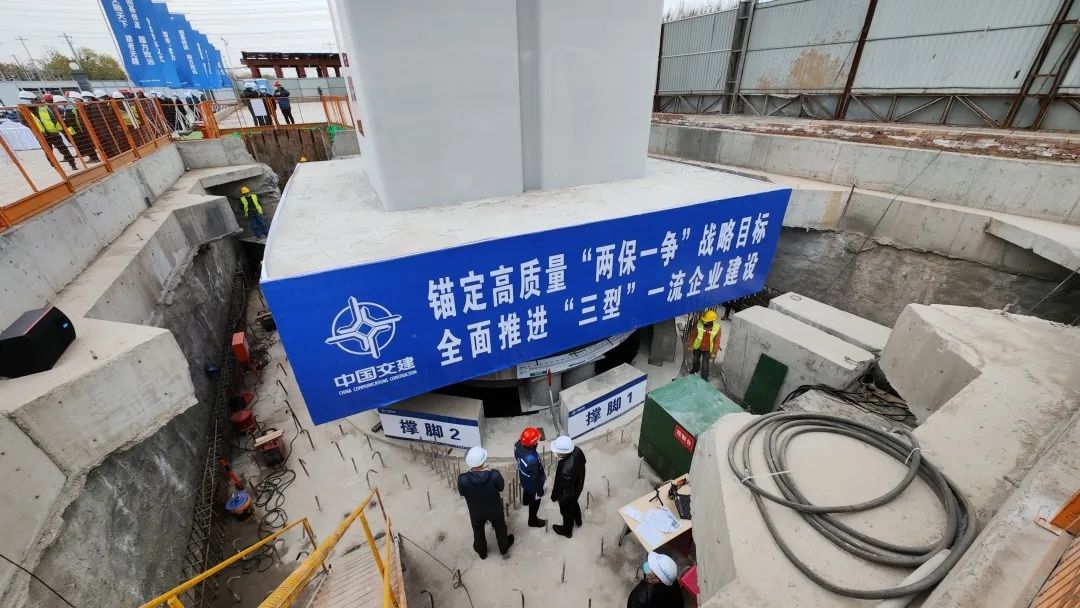 “1米、50厘米、30厘米、10厘米、3厘米、1厘米、就位”,伴随着测量负责人对讲机里传来的持续报告声,11月28日下午,在国际港务区港务西路与货运铁路枢纽北环线交叉口西北象限内,一座T构现浇转体桥缓缓转动,历经1小时高空精准对接,7900吨的庞然大物成功“牵手”铁路两侧桥墩。