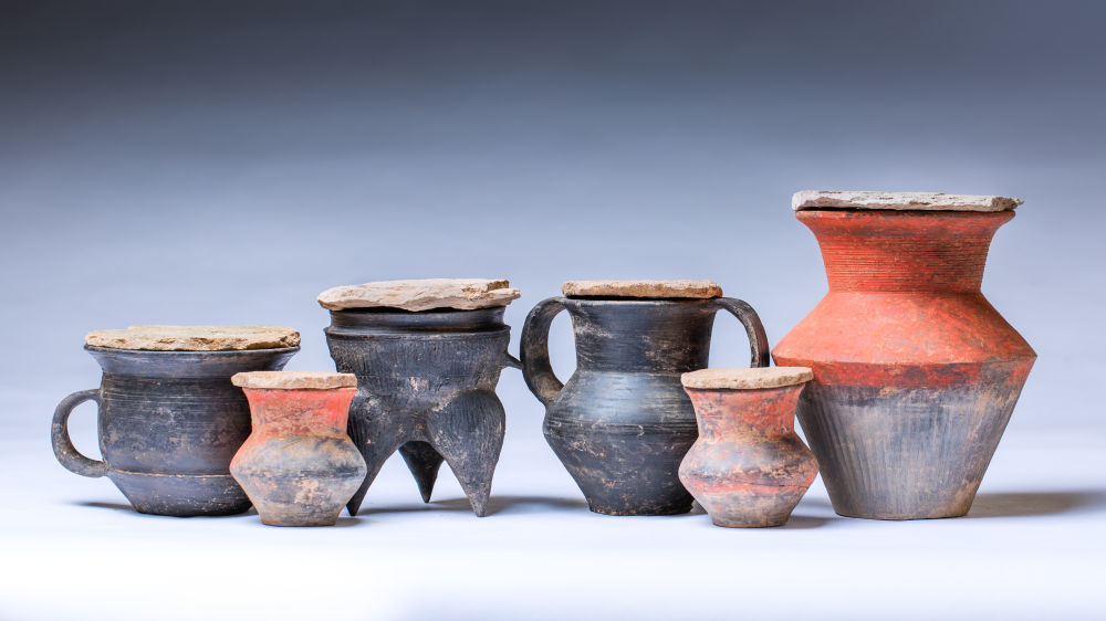 石峁遗址皇城台高等级墓地中出土的陶器(资料图片)。新华社发(陕西省考古研究院供图)