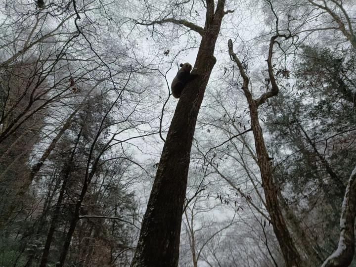 3月以来,自然保护区巡护员李宝德多次邂逅野生大熊猫。“3月7日,我在巡护时,留意到路边有大熊猫粪便,但在地上没见‘猫影’。我往高处看,发现一只大熊猫趴在离我20米远的一棵树上,它处的位置离地面约有15米。”虽然离得远,但李宝德觉得那很可能是只雌性大熊猫。“春天里,跃跃欲试的‘角斗士’是雄性大熊猫,在树上张望的一般是雌性大熊猫。”
