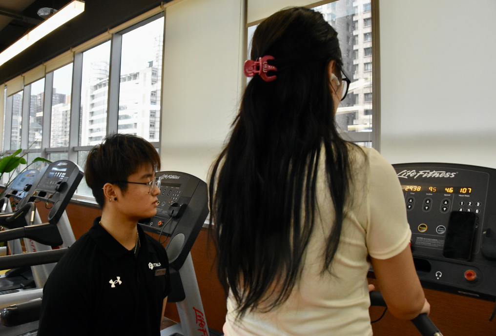 8月5日傍晚,西安一家健身房的教练正给健身者提供指导。新华社记者 郑昕 摄