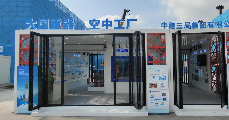 “空中工厂集中展示中建三局在建筑领域最尖端的科技成果,包括超高层造楼机、住宅造楼机、造桥机、循环电梯等。”中建三局空管中心项目负责人刘磊向参观嘉宾介绍。