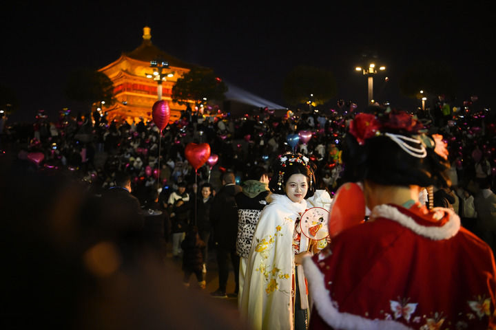 千年一觉长安梦。亮灯时刻,不少人身上的汉服仿佛一秒“激活”,各展其美。