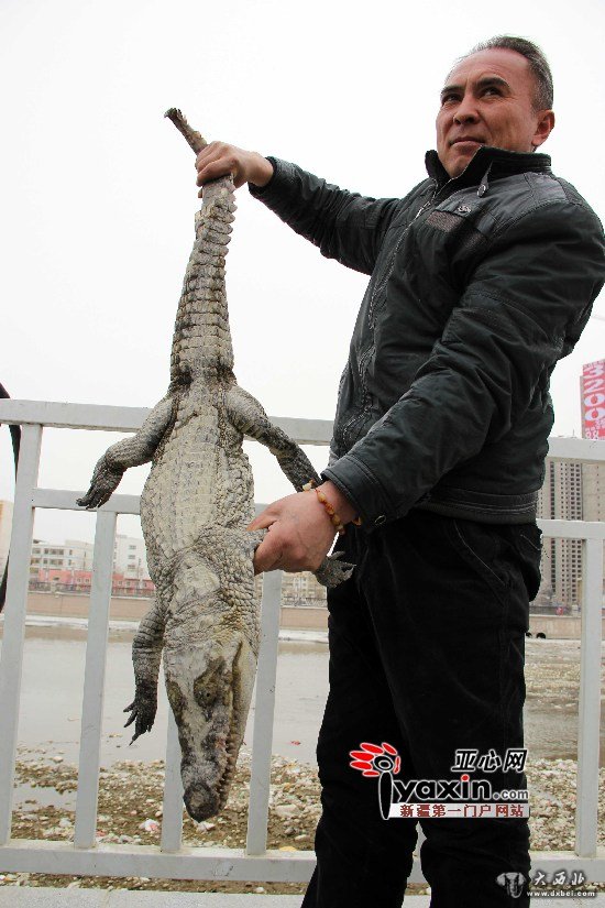 大西北网3月12日讯 据亚心网报道(记者 郭玲 通讯员 宦朝伟)河里漂着一段一米多长的木头,竟然长着4只脚,仔细一看,竟然是一条鳄鱼。3月10日下午,在库尔勒市孔雀河边,阿里甫·赛迪拎着一条一米多长的鳄鱼,向围观市民讲述他从葵花桥附近的孔雀河里捞起一条鳄鱼的经过。