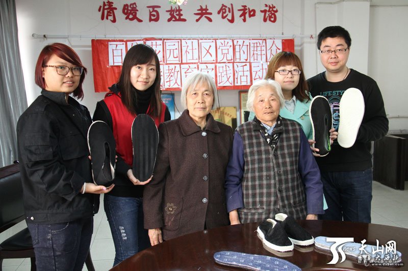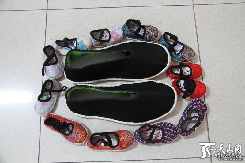 乌鲁木齐天山区幸福路街道百信花园社区工作人员看到这一信息后,立即行动起来,他们挨家挨户找会做鞋的人,做双特大号鞋子送给大脚的胡杜尤木·拜尔迪穿。