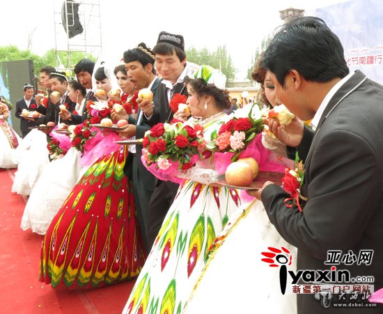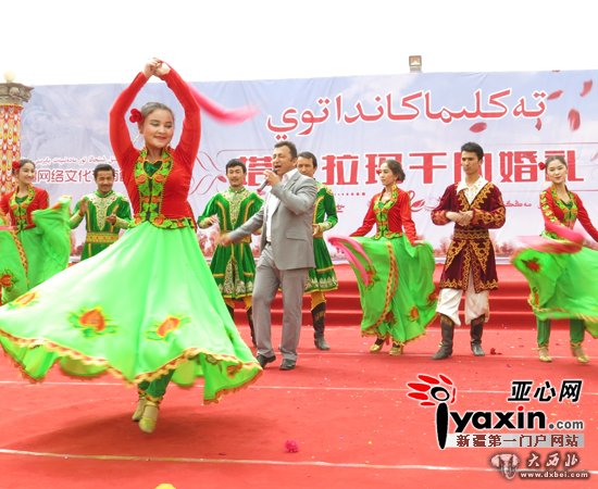 大西北网5月5日讯 据亚心网报道 (记者刘芳)5月1日,由新疆互联网信息办公室主办的2014新疆网络文化节“塔克拉玛干的婚礼”活动在沙雅县海楼乡启动。此项活动还将在南疆4地州的6个县举办6个集体婚礼专场,届时将展现出南疆各族农村青年生活的新风尚,精神的新面貌,以及提倡厉行节约的现代文明的婚尚新风,见证了网络文化活动调动起来的全民参与热情。