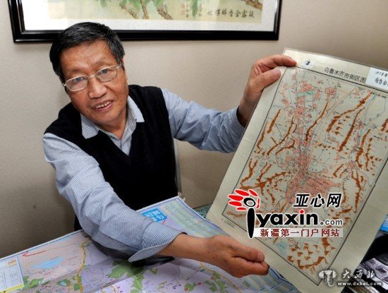 “解放前夕,乌鲁木齐市城区在地图上的面积很小,整个市区面积才不到10平方公里,人口也才10万。”刘天视指着一张1941年的地图告诉记者,那会儿,乌鲁木齐市经济比较萧条,交通很闭塞,文化也比较落后,“整个城区在地图上只有巴掌那么大”。
