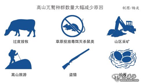 近年来,由于人类过度放牧、草原投放毒饵灭杀鼠类、山区采矿、高山旅游、盗猎和捡蛋等活动,致使高山兀鹫的栖息地遭到严重破坏,各地高山兀鹫种群数量大幅减少。