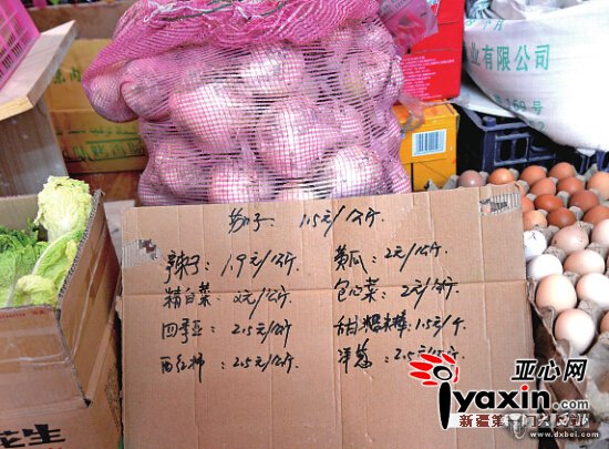 大西北网7月30日讯 据亚心网报道 几样新鲜的蔬菜,一张纸壳做的简易价格表,外加1平方米左右的面积,这就是摊主肖先生在荣和城二期小区里设置的临时蔬菜点,虽然蔬菜品种不多,但由于新鲜且价格较低,小区不少居民都喜欢在这里买菜。