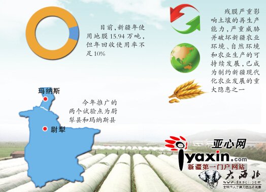 据了解,2013年,新疆的地膜覆盖种植面积4700万亩,是全国地膜覆盖种植面积最大、地膜用量最多的省区。目前,新疆年使用地膜15.94万吨,但年回收使用率不足10%。残膜严重影响土壤的再生产能力,严重威胁并破坏新疆农业环境、自然环境和农业生产的可持续发展,已成为制约新疆现代化农业发展的重大隐患之一。