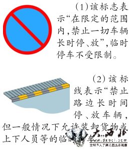 在驾驶车辆过程中,行驶至设置有此种标志或者划有此种标线的路段,看到这样的标志或者标线,那就意味着这条路段无论是临时停车和停放机动车都是不被允许的。