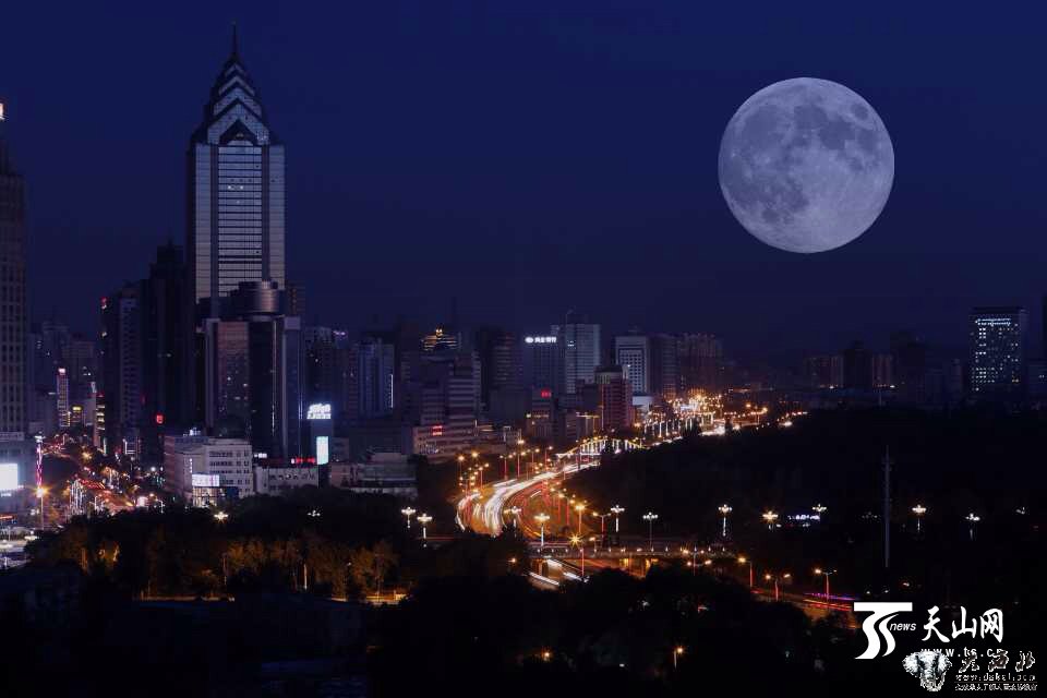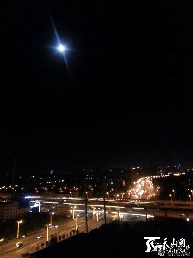 网友“Hlj”:天公作美,乌鲁木齐夜空迎38年来最早中秋月,真的很漂亮!