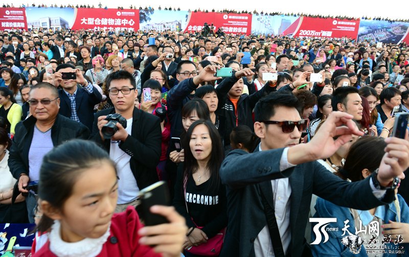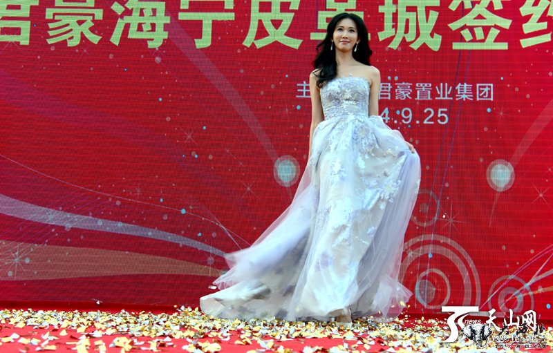 大西北网9月26日讯 9月25日下午,台湾著名艺人“女神”林志玲现身新疆五家渠出席一场商业活动。她身穿一条拖地浅白色纱裙,与新疆艺人艾尼瓦尔江学跳新疆舞并与现场观众互动。