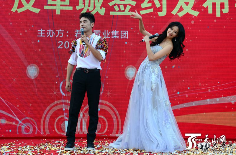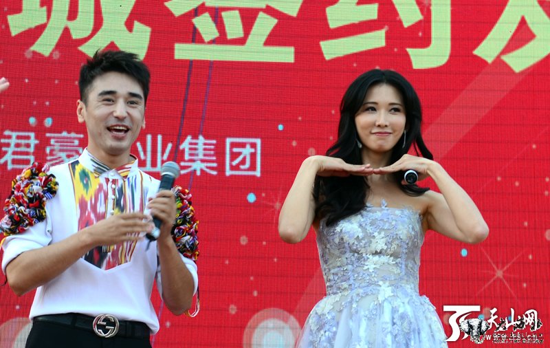林志玲现身新疆五家渠出席商业活动,与新疆艺人艾尼瓦尔江学跳新疆舞并与现场观众互动。