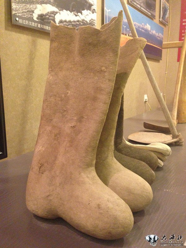 这种用羊毛毡擀成的一体靴,堪称“新疆版UGG”,用料纯正,外形很萌。不过,对当年在冰天雪地中拓野开荒的兵团人来说,毡筒可不是神马时髦货,而是必需的生产资料,没它过不了冬。一天的劳动后,回到简陋住所,主人通常会将毡筒放到火墙上歇脚——靠着这堵“暖气墙”烤干,第二天继续为主人效劳。可以说,它是兵团生产建设的无言见证者。